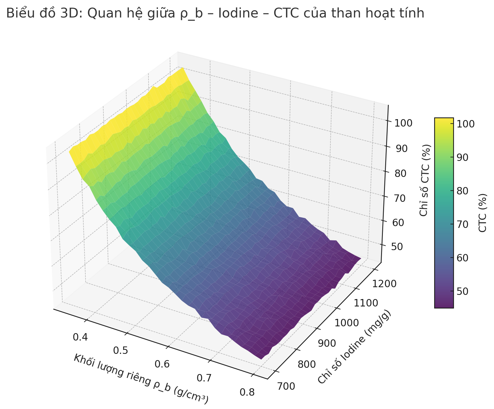| Khối lượng riêng (g/cm³) | Chỉ số Iod (mg/g) | CTC (%) |